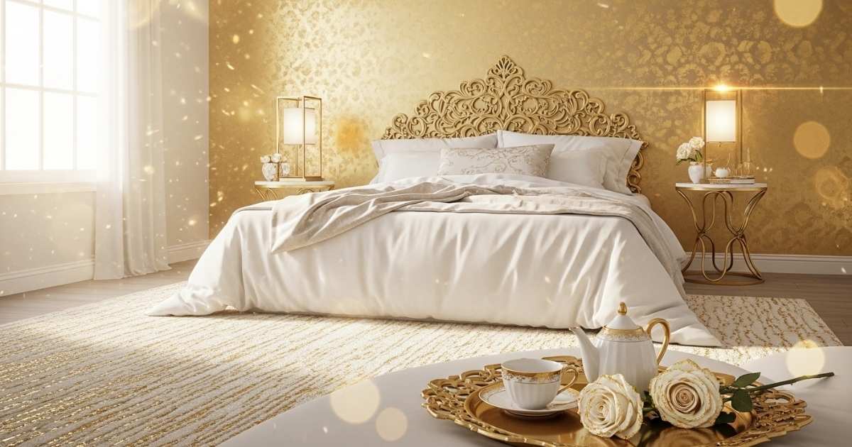 A delicate crystal chandelier catches the light and scatters it across gold-edged accessories. The result is soft, luminous, and genuinely enchanting. It’s the kind of space that inspires you to slow down.